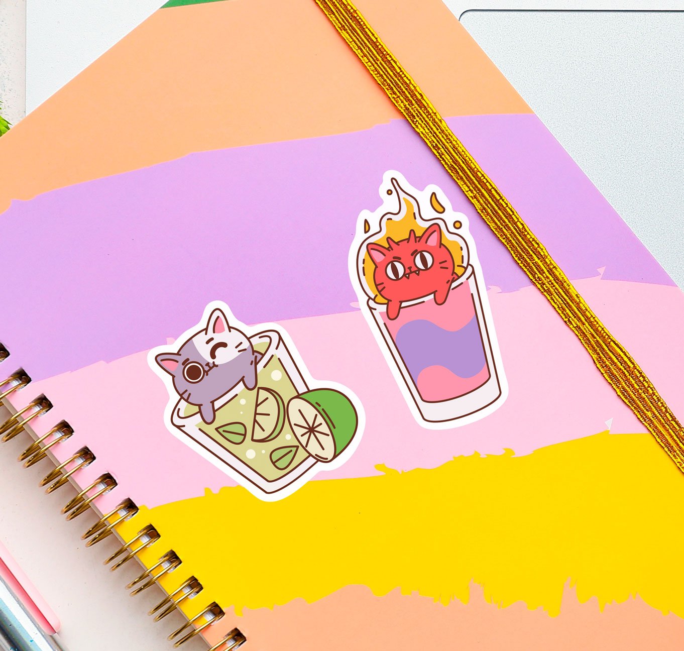 Estas pegatinas funcionan perfectamente en tazas, vasos de café, cuadernos, computadoras portátiles, cascos, botellas de agua, agendas, libros, bicicletas, teléfonos, bullet journals, automóviles y cualquier otra cosa que se te ocurra.