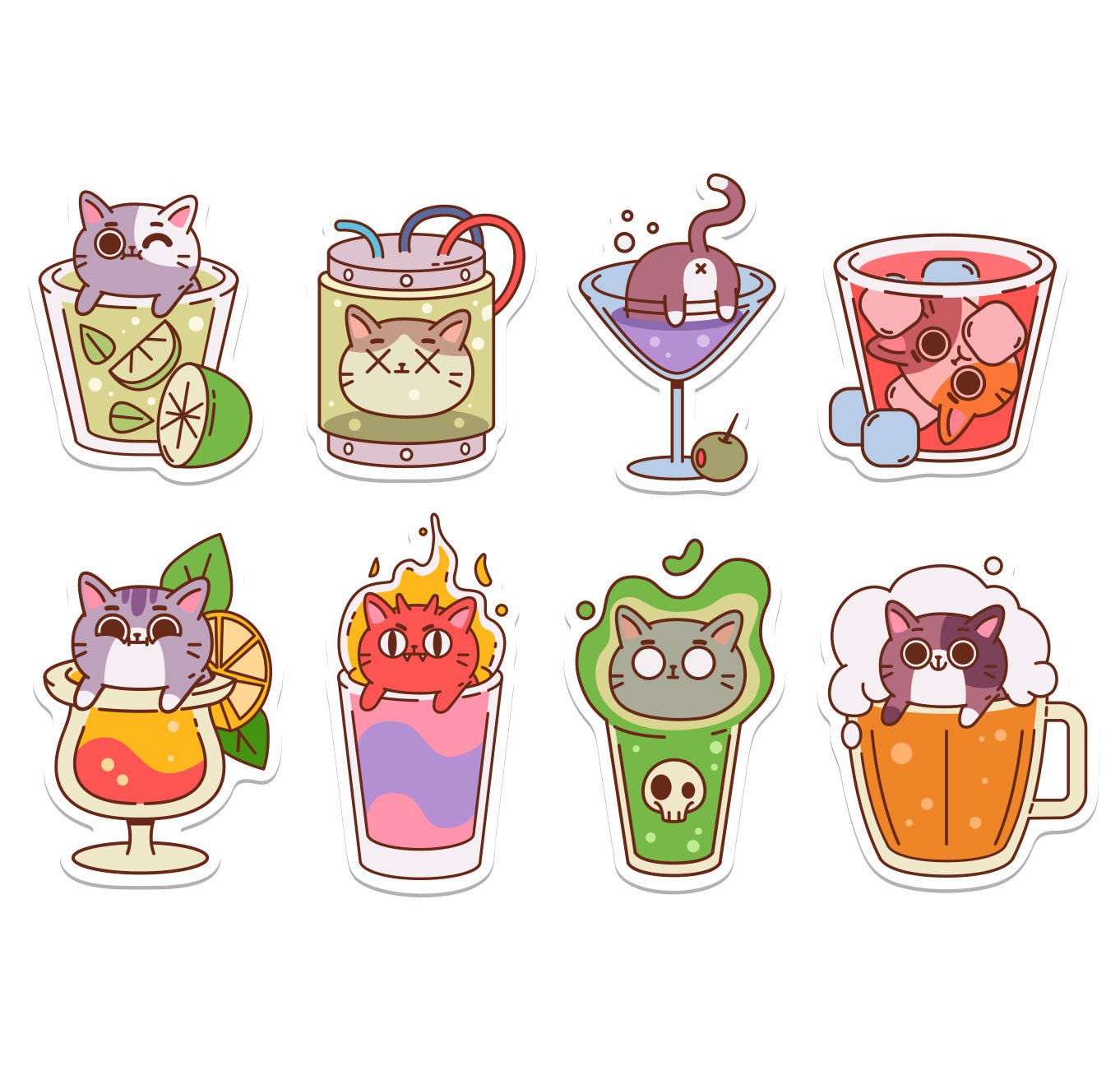 Juego de 8 stickers reutilizables: Cóctel de gatitos | Impresión de alta calidad | Resistente al agua